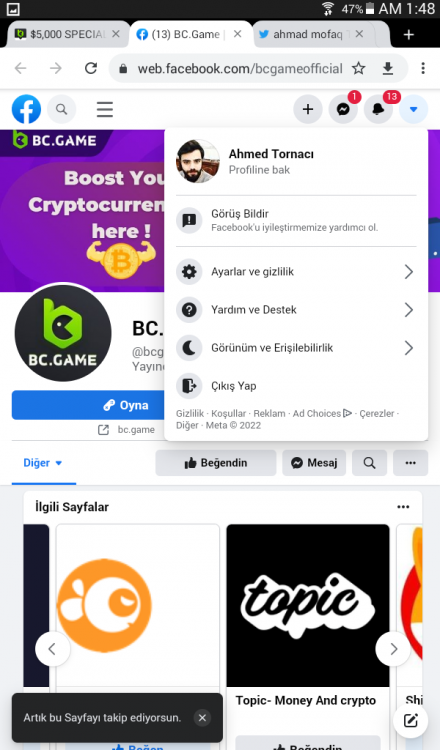 Follow BCGame on Facebook (screenshot & FB username required). complet✔