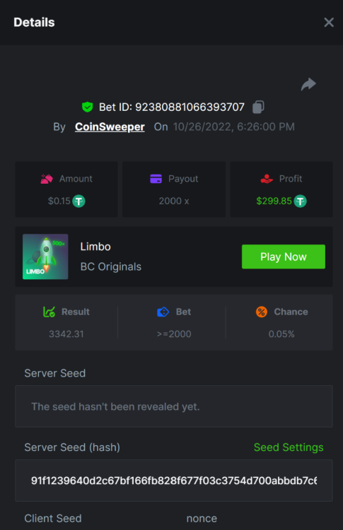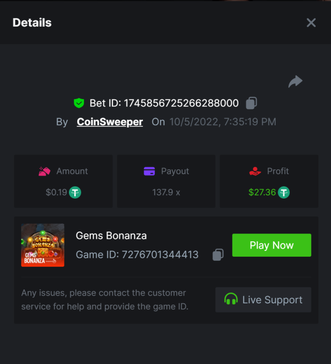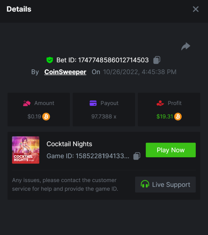5. https://bc.game/#/sd/10UF8OAHLT0XLF - 375.0253x https://bc.game/#/sd/10UF45UTXGV6DV - 137x https://bc.game/#/sd/10UF4L9PN0PPUB - 115x https://bc.game/#/sd/10UF5LQ2USBBBN - 110x https://bc.game/#/sd/10UF9BZOYZUTCJ - 523.9 x https://bc.game/#/sd/10UFAK7HTDUWPF - 171.8x https://bc.game/#/sd/10UFBOWUNK3DAR - 95.4x https://bc.game/#/sd/10UF7SLOKLRTOZ - 50x - Bounty https://bc.game/#/sd/10UFBXW23LF9JN - 116.5x https://bc.game/#/sd/10UFCM2WB6JWUR - 190x https://bc.game/#/sd/10UFD5FS7F0QVN - 136.85 https://bc.game/#/sd/10UFDPDK1Q83KJ - 150x https://bc.game/#/sd/10UFE79T53LGR7 - 302.7x