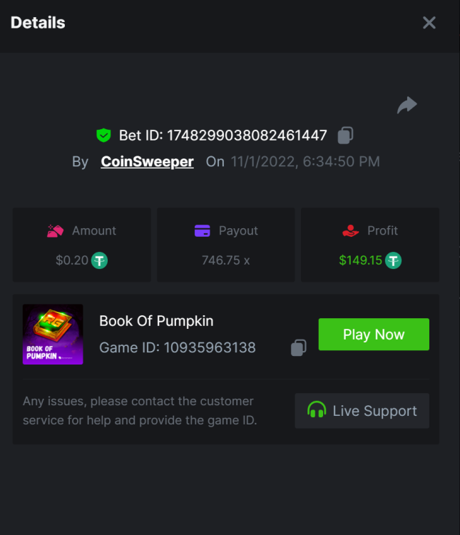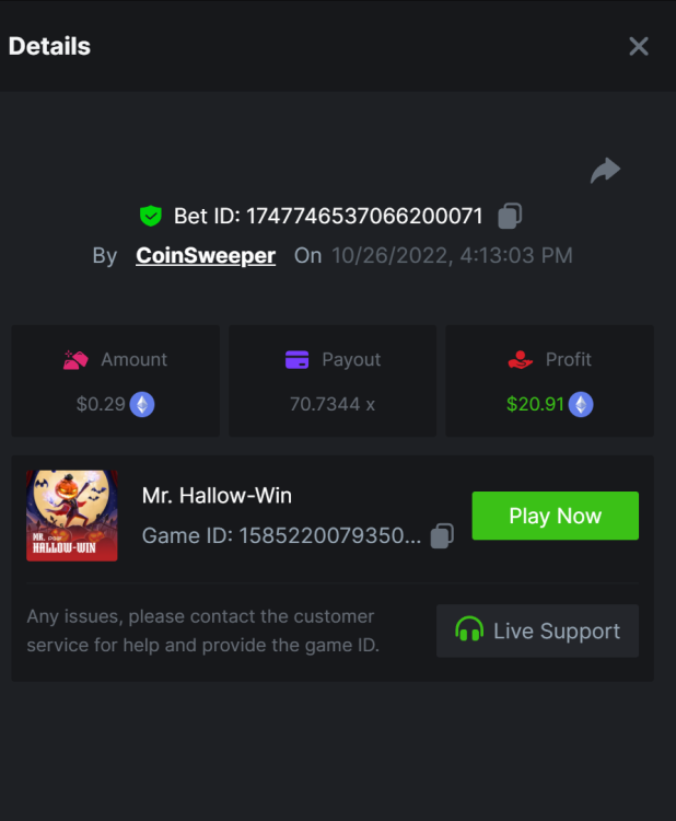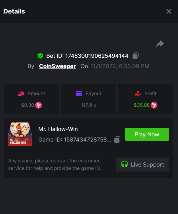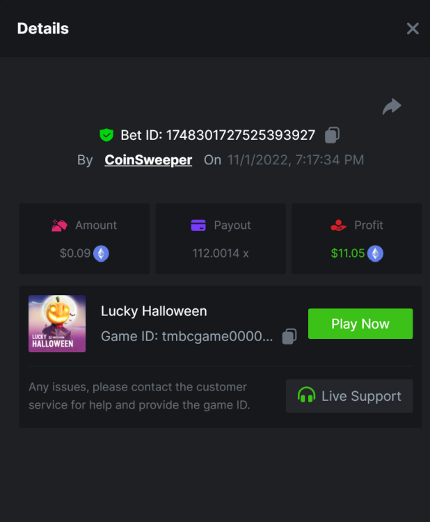 2. Undead Fortune - 644x https://bc.game/#/sd/10W38JEP0QHAMR Tombstone - 1408x https://bc.game/#/sd/10W9S2XO0EG36B Zombie Carnival - 577x https://bc.game/#/sd/10W9TY5RPP9Q8J Fat Drac - 516x https://bc.game/#/sd/10W9WBK9G92G43 Book of pumpkin - 746x https://bc.game/#/sd/10W9XA9KPK1PG3 Helloween - 223x https://bc.game/#/sd/10W9XX1WNUFS43 Mr hallow win - 117.9x https://bc.game/#/sd/10W9YFVLU20FTF Night of living tales : 100.4x https://bc.game/#/sd/10W9YR08U0JTW3 Zombie Circus - 582x https://bc.game/#/sd/10W9ZA08NEFZF7 Lucky halloween - 112x https://bc.game/#/sd/10W9ZY5AB8D91V wolf night - 184x https://bc.game/#/sd/10WA15QHEN8QAB voodoo - 125x https://bc.game/#/sd/10WA1R24DYLPG3 Halloween Jack -46.6x https://bc.game/#/sd/10WA628XAALKWJ
