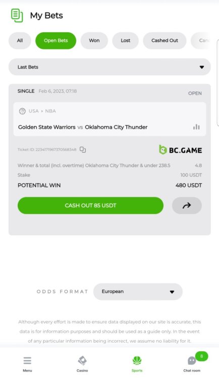 Please check in that bet type 1x2 this match How bet Sacramento win with 1,44 and win event with minimun odds 1,5??? @BCGame_bil