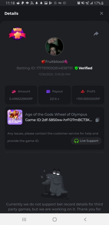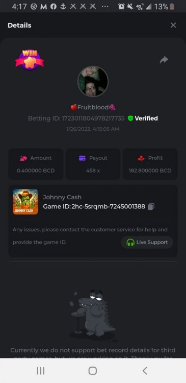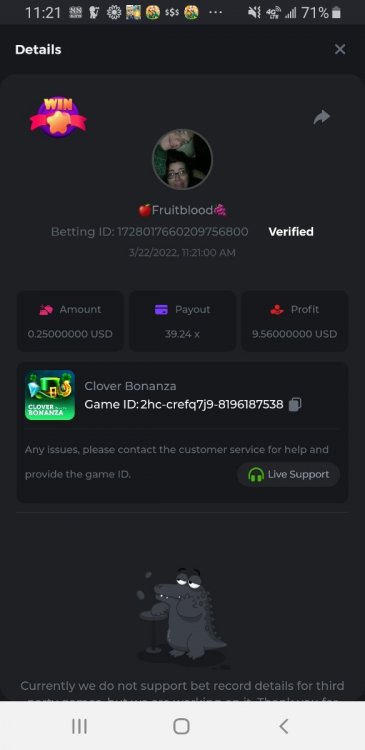 9. Betting ID: 42520025906545177 It keeps adding my old win screenshots idk why lol sorry