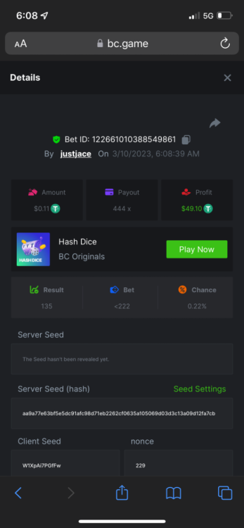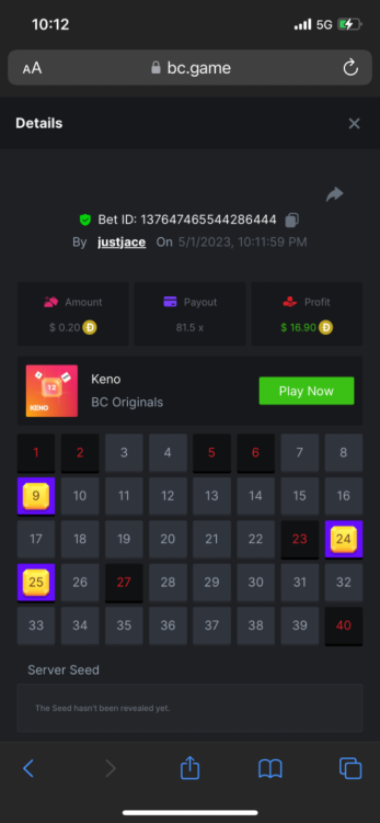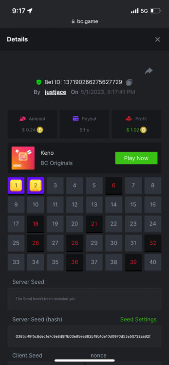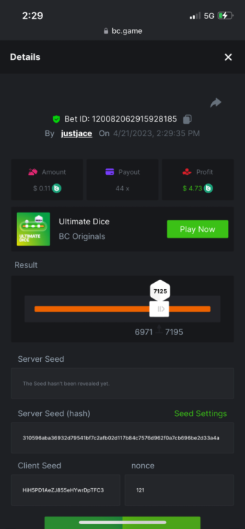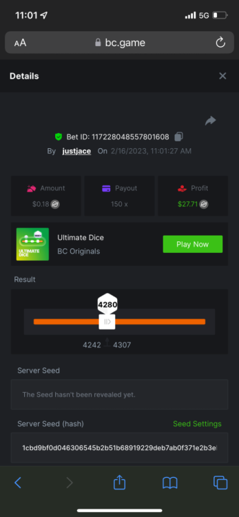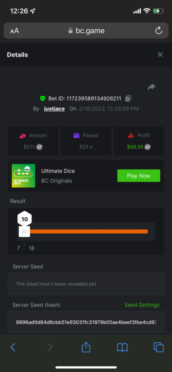 5.1x: https://bc.game/#/sd/118ROTNAR84R9V 8x: https://bc.game/#/sd/118RQVPP8BQYAB 11x: https://bc.game/#/sd/118RPW4RVZQVPV 56x: https://bc.game/#/sd/118RRFI8VER3TF 81.5x: https://bc.game/#/sd/118RS6P6T5KLJN 100x: https://bc.game/#/sd/118U0YISWJW5CJ