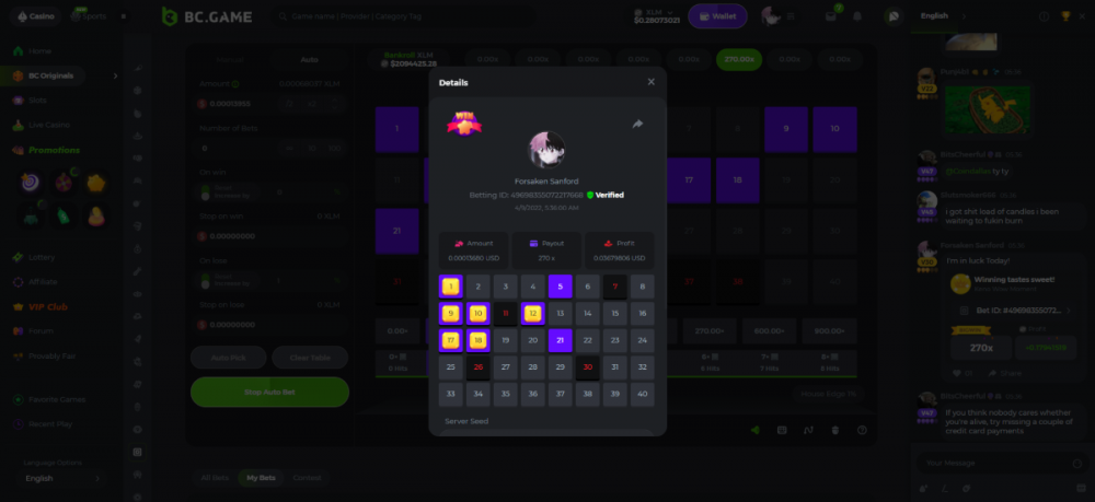 1. Bet Link: https://bc.game/#/sd/11NU8QGK83WRZJ Bet ID: 404751391488228050 User ID: 1810686