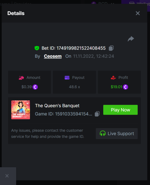 • In the same post, upload a screenshot of your win by clicking the game ID WITH VIEW IN USD mode ENABLED (accessible at the bottom of dropdown menu for your wallet up top, and Submit Reply. Done! This way, we can ensure that your bet indeed met the minimum requirement at the time of placing it: