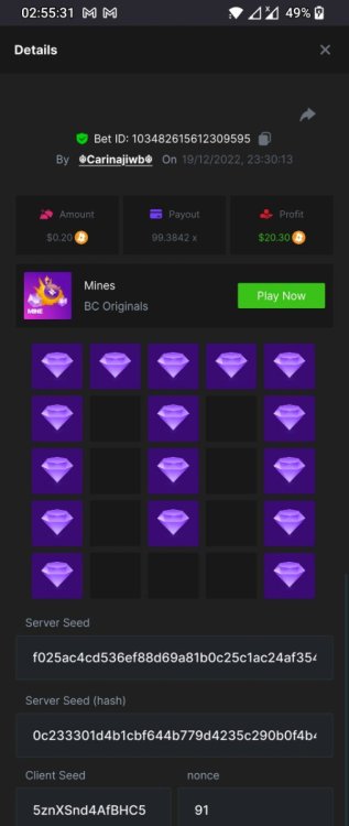BCGame_Ewa Posted December 16, 2022 Share Posted December 16, 2022 $5,000 FIND WANTED LETTERS AND SAVE XMAS – MINES CHALLENGE Starts: 19, December 08:00 am GMTEnds: 26, December 08:00 am GMT Hey Everyone! Christmas is coming and we want to invite you to our Christmas Hunt. Help us save Xmas and take gifts from Santa bag. We are giving away $5,000 in prizes for all qualified participants. So head over to the Mines game page and get started! – (Check all the conditions of participation below). What's the Challenge? Find all letters from word ‚XMAS’ on Mines game using below mentioned settings: for ‘X’ - 9 diamonds 8 mines, payout 83.1985x for ‘M’ - 16 diamonds 4 mines, payout 99.3842x for ‘A’ - 12 diamonds 6 mines, payout 102.1699x for ‘S’ - 9 diamonds 9 mines, payout 176.8013xOnly players who post all 4 bets with exact the same settings as on below screenshots will win prizes. How to Enter To enter, copy the link of the bet you'd like to submit. Once you've copied it, paste it as a reply to this thread like so: Link: https://bc.game/#/sd/10YWJXCLX823GZ In the same post, upload a screenshot of your win by clicking the game ID WITH VIEW IN USD mode ENABLED (accessible at the bottom of dropdown menu for your wallet up top. This way, we can ensure that your bet indeed met the minimum requirement at the time of placing it: Link: https://bc.game/#/sd/10YWJXCLX823GZ Link: https://bc.game/#/sd/10YWK6WJG1YFBN Link: https://bc.game/#/sd/10YWLNKDX4QIVN Link: https://bc.game/#/sd/10YWMF6CJCR95F Minimum VIP Minimum VIP 4 Minimum Payouts Need to find all 4 letters with mentioned payouts for each. Minimum Bet Size $0.2 USD equivalent Eligible Coins All cryptocurrencies are eligible (excepting JB) Prize pool & Reward Breakdown Each particpant who find correcly all 4 letters from word 'XMAS' will receive EQUAL reward from prize pool as below: Please combine all of your hits together in a SINGLE post. Edit your existing post for additional hits, don't create a new post. Each eligible entry must have the Bet Slip URL, failure to include it will disqualify participation in the event. Bet Slip image is not mandatory. Bets must be posted within 24 hours of placing bet in order to keep things fair for everyone. Bets must be made during the specified time window stated above. This thread will lock automatically when the time period is over. One (1) entry per household. Anyone found attempting to win multiple prizes will be disqualified from this challenge as well as all future challenges. Failure to follow instructions will result in your submission being null and void. By entering this challenge, you acknowledge that BC.Game has the final decision on results and placement. Payouts will be distributed after the event is finished. Please note that it could take up to 48 hours after the completion of the event. Good luck everyone! Merry Christmas! 3 Link to comment Share on other sites More sharing options...