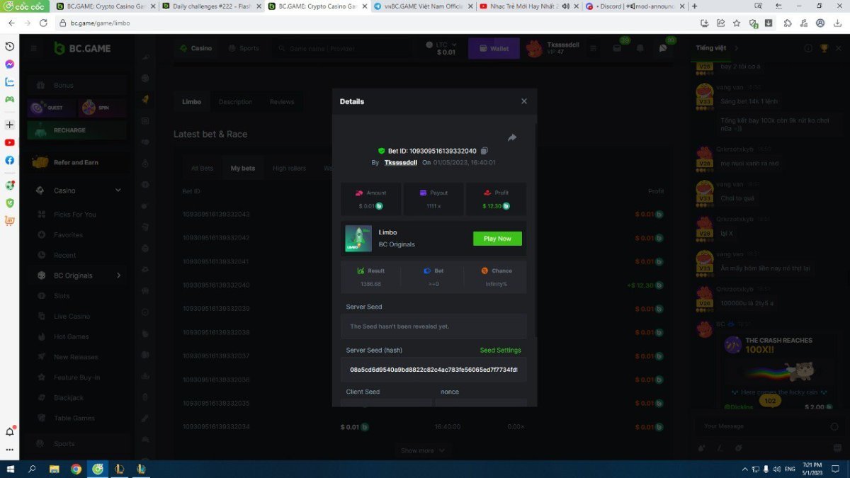 Maksypro Posted May 1, 2023 Share Posted May 1, 2023 Read Carefully Before Start To Hunt Daily Challenges #222 LIMBO Hunt : Win the highest multiplier Min Payout requirement X100 Min Level 4 ๏ธDuration Starting : Now End time : 23.59 UTC Time How to Join? Make screenshot + paste your bet link + UID or Profile link Mini bet amount - 0.01$ Any coin allowed Reward Prizes 1st Place........$7 BCD 2nd Place.....$5 BCD 3rd Place.....$4 BCD 4th Place.....$3 BCD 5th Place.....$2 BCD ๐ต Winners will be announcing next day after Roll Point! Link to comment Share on other sites More sharing options...